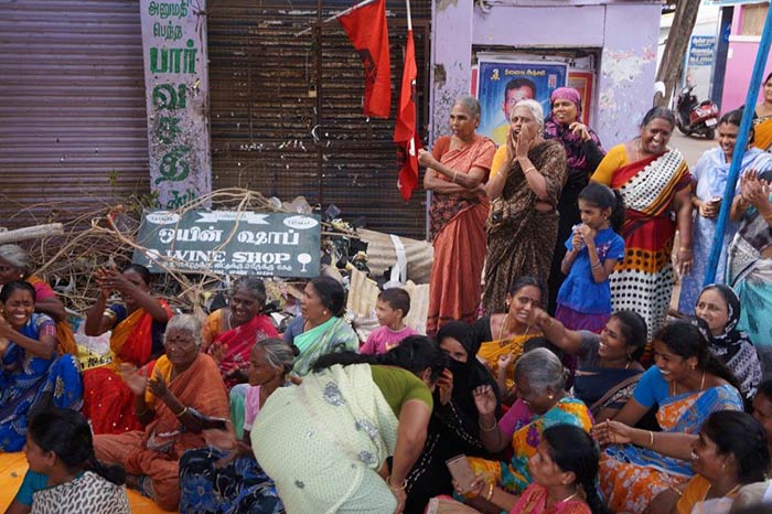அப்பகுதியின் பிரச்சினையை கேள்விப்பட்டு மக்கள் அதிகாரம் அங்கே பிரச்சாரம் செய்தது. மக்களிடம் கையெழுத்து இயக்கம் நடத்தப்பட்டு மக்கள் அதிகாரத்தின் தலைமையில் போராட்டம் நடத்த முடிவெடுக்கப்பட்டது. 29.06.2017 அன்று காலையில் பறையிசைத்து போராட்டத்திற்கு அறைகூவல் விடுக்கப்பட்டது. டாஸ்மாக் கடை முன்பாக குவிந்த பெண்கள் முள்ளை வெட்டி அடைத்தனர். கடையை குப்பைத் தொட்டியாக்கினர். சம்பவத்தையறிந்த காவல் ஆய்வாளர் பெரியசாமி நேரில் வந்து, போராட்டம் அனுமதி வாங்கிட்டு தான் பண்ணனும். கலைஞ்சு போங்க என்றார். பலமுறை மனுகொடுத்தும் கடையை மூடாதது ஏன் என மக்கள் ஆவேசமாக கேள்வியெழுப்பினர். மக்களின் கேள்விக்கு பதிலளிக்க முடியாமல் பின்வாங்கினார் ஆய்வாளர் பெரியசாமி.