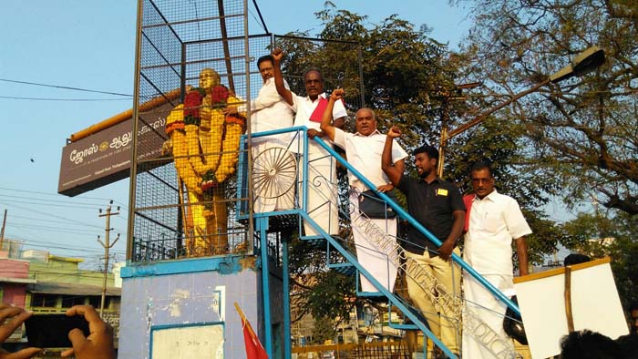 இது தவிர மேற்கண்ட பிரச்சனை குறித்து மக்கள் கலை இலக்கியக் கழகம் சார்பில் 07.03.2018 புதன் கிழமை அன்று மாலை 5 மணி அளவில் பெரியார் சிலைக்கு மாலை அணிவித்து ஆர்ப்பாட்டம் நடத்தப்பட்டது. இந்த ஆர்ப்பாட்டத்தில் இந்திய புரட்சிகர மார்க்சிஸ்ட் கட்சியினரும் கலந்து கொண்டனர். தலைமை அஞ்சலகம் அருகிலிருந்து தோழர்கள் முழக்கமிட்டவாறு சென்றது மக்களிடையே பிரச்சாரமாக அமைந்தது. முன் அனுமதி இன்றி திடீரென இந்த ஆர்ப்பாட்டம் நடைபெற்றது.
