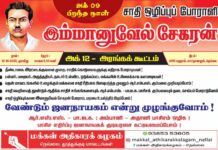 - சாதிவெறியை தூண்டும் திரைப்படங்கள், பாடல்களை தடை செய்! நீதிபதி சந்துருவின் பரிந்துரைகளை தமிழ்நாடு முழுவதிலுமுள்ள அனைத்துப் பள்ளிகளிலும் உடனே நடைமுறைப்படுத்து!
