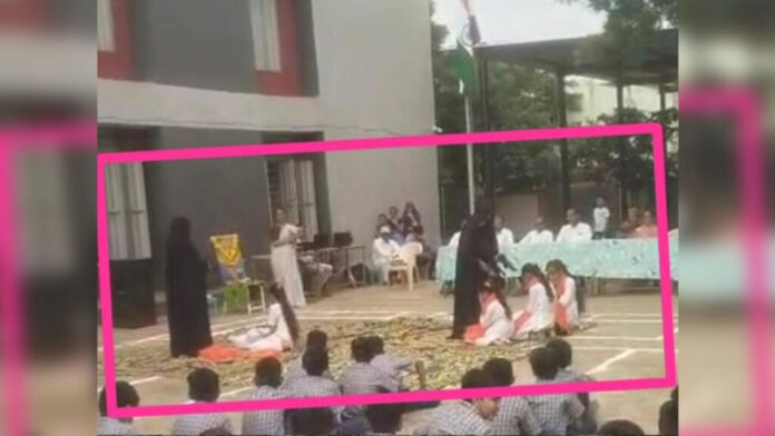 பா.ஜ.க. ஆளும் குஜராத்தின் பாவ்நகரில் உள்ள கும்பர்வாடா பள்ளியில், ஆகஸ்ட் 15 அன்று நடைபெற்ற ‘சுதந்திர தின’ கொண்டாட்டத்தில் அரங்கேற்றப்பட்ட நாடகத்தில், இஸ்லாமியர்கள் அணியும் பர்தா உடையணிந்த மாணவிகள் பயங்கரவாதிகள் கதாபாத்திரத்தில் நடிக்க வைக்கப்பட்டுள்ளனர்.