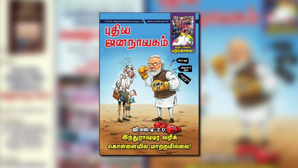 புதிய ஜனநாயகத்தின் அக்டோபர் 2025 மாத அச்சு இதழ் வெளிவந்துள்ளது. வாசகர்களும் தோழர்களும் வாங்கிப் படித்து ஆதரவு தருமாறு கேட்டுக் கொள்கிறோம்..