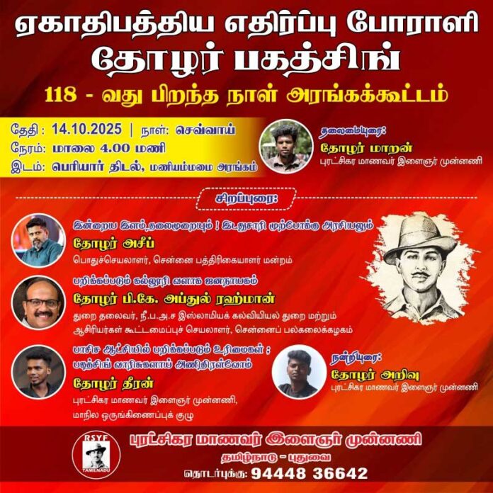 தோழர் பகத்சிங் 118 – வது பிறந்த நாள்