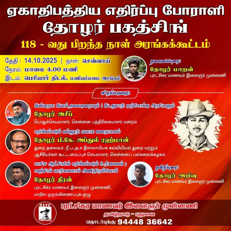 பாசிச ஆட்சியில் பறிக்கப்படும் உரிமைகள்: பகத்சிங் வாரிசுகளாய் அணிதிரள்வோம்