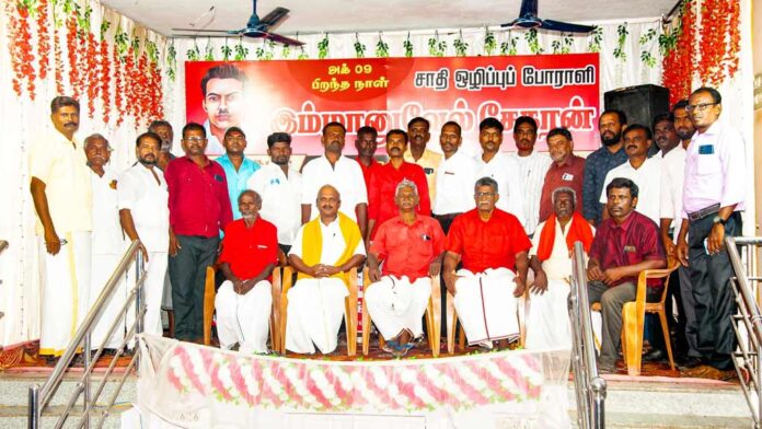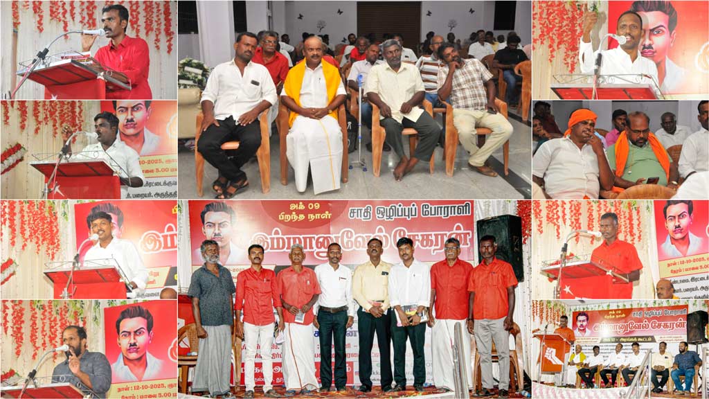அக்டோபர் 12 அன்று நெல்லை சமாதானபுரம் ஏ.டி.எம்.எஸ். மகாலில் சாதி ஒழிப்புப் போராளி இமானுவேல் சேகரன் பிறந்தநாள் அரங்கக்கூட்டம் நடைபெற்றது.