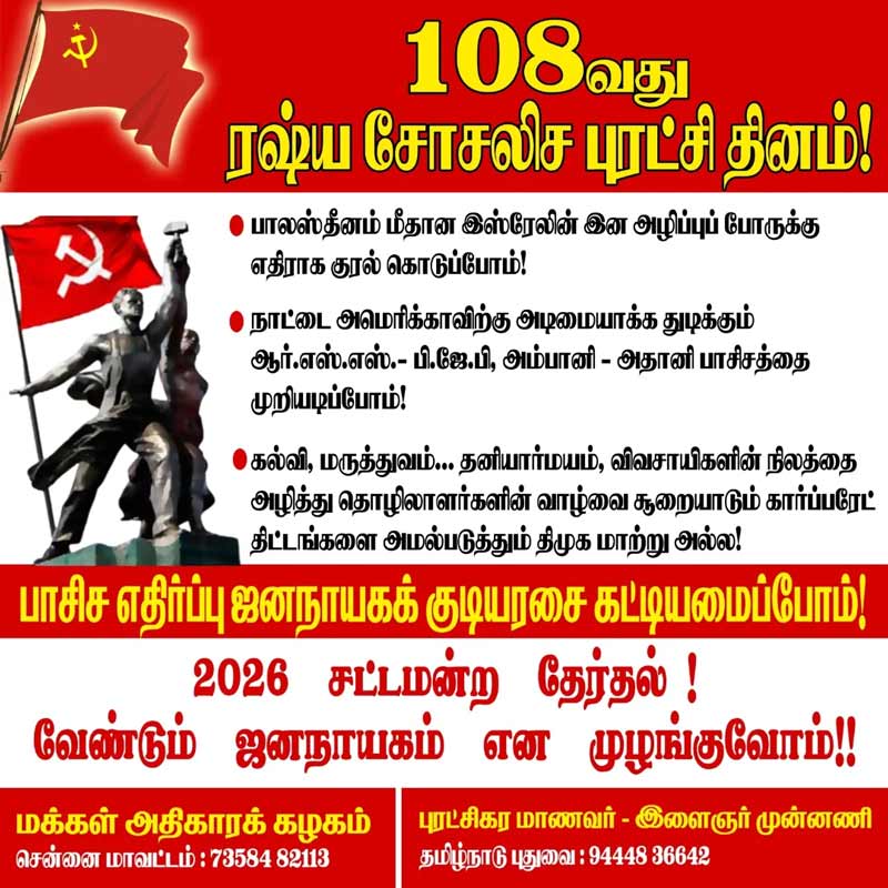 108 வது ரஷ்ய புரட்சி நாள் வாழ்க!