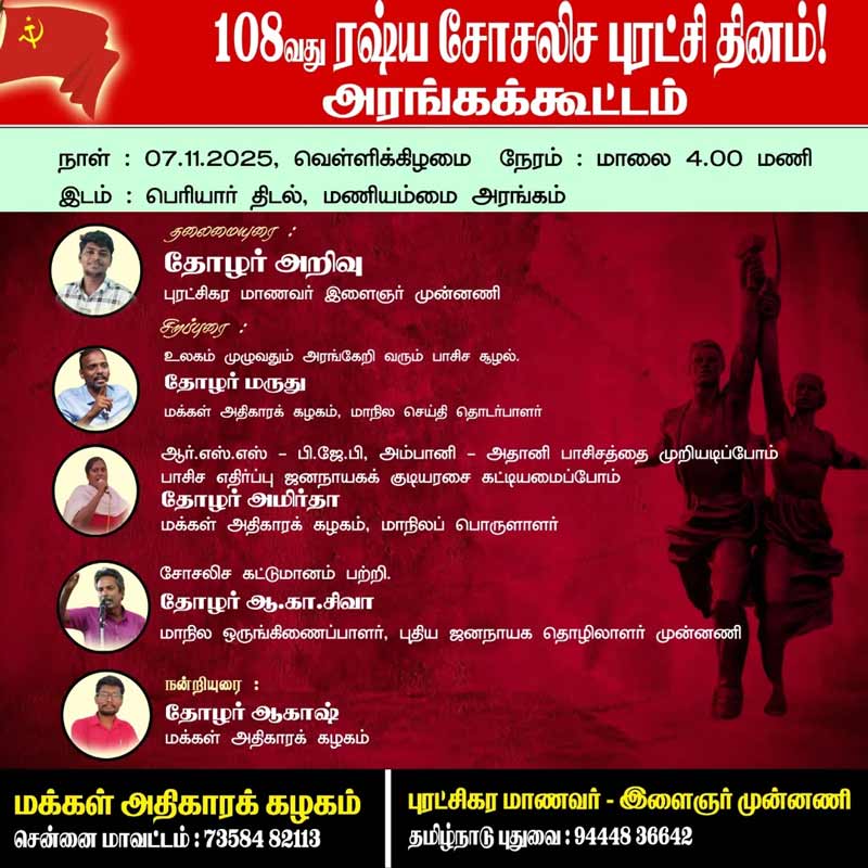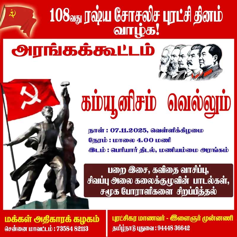 108வது ரஷ்ய சோசலிச புரட்சி தினம்! | அரங்கக்கூட்டம் | சென்னை