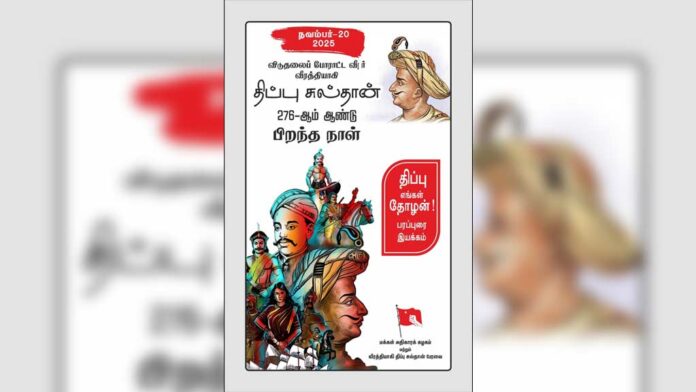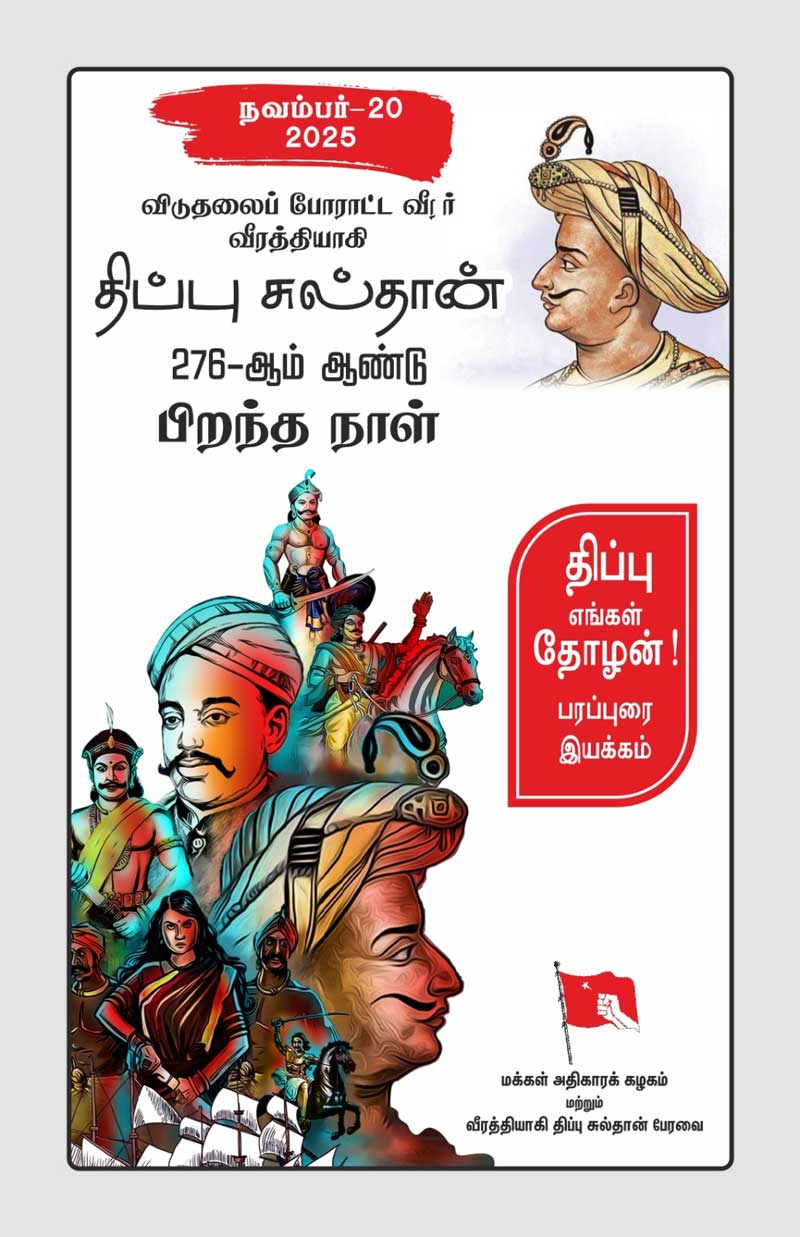 இது பாசிச எதிர்ப்புக் காலகட்டம். ஆர்.எஸ்.எஸ், பி.ஜே.பி – அதானி, அம்பானி பாசிசக் கும்பலால் ஒடுக்கப்படும் அனைத்துப் பிரிவு மக்களும் ஒன்றிணைந்து, பாசிச எதிர்ப்பு மக்கள் எழுச்சியை உருவாக்க வேண்டும். அத்தகைய பாசிச எதிர்ப்புப் போரில் உறுதியோடு களத்தில் நிற்பதற்கு திப்புவின் வீரஞ்செறிந்த வரலாறு நமக்கு வழிகாட்டுகிறது.