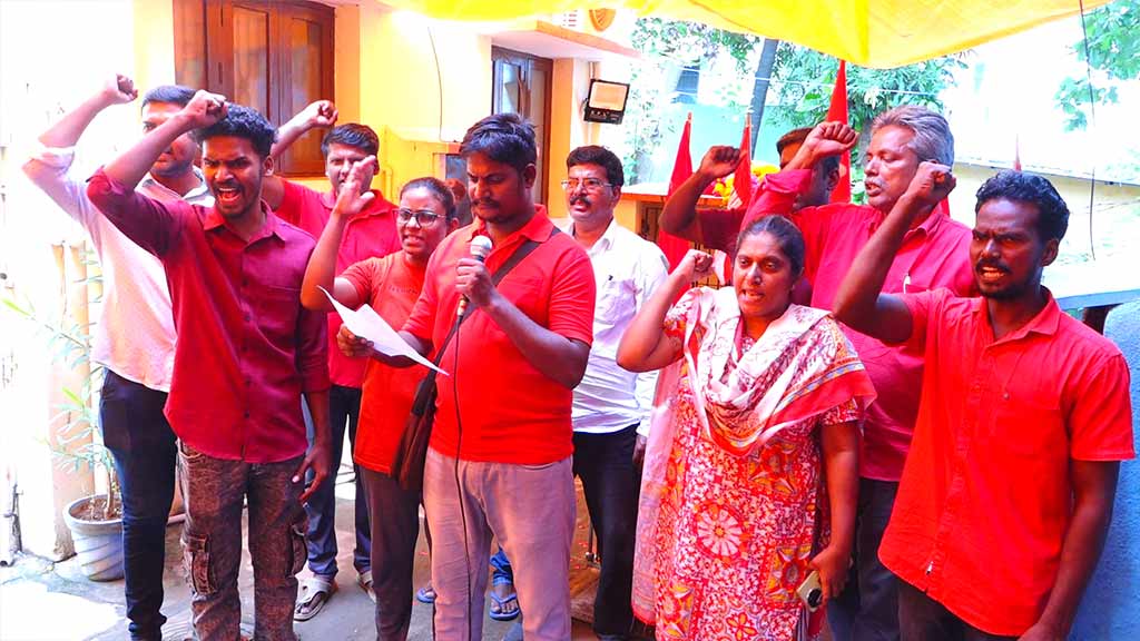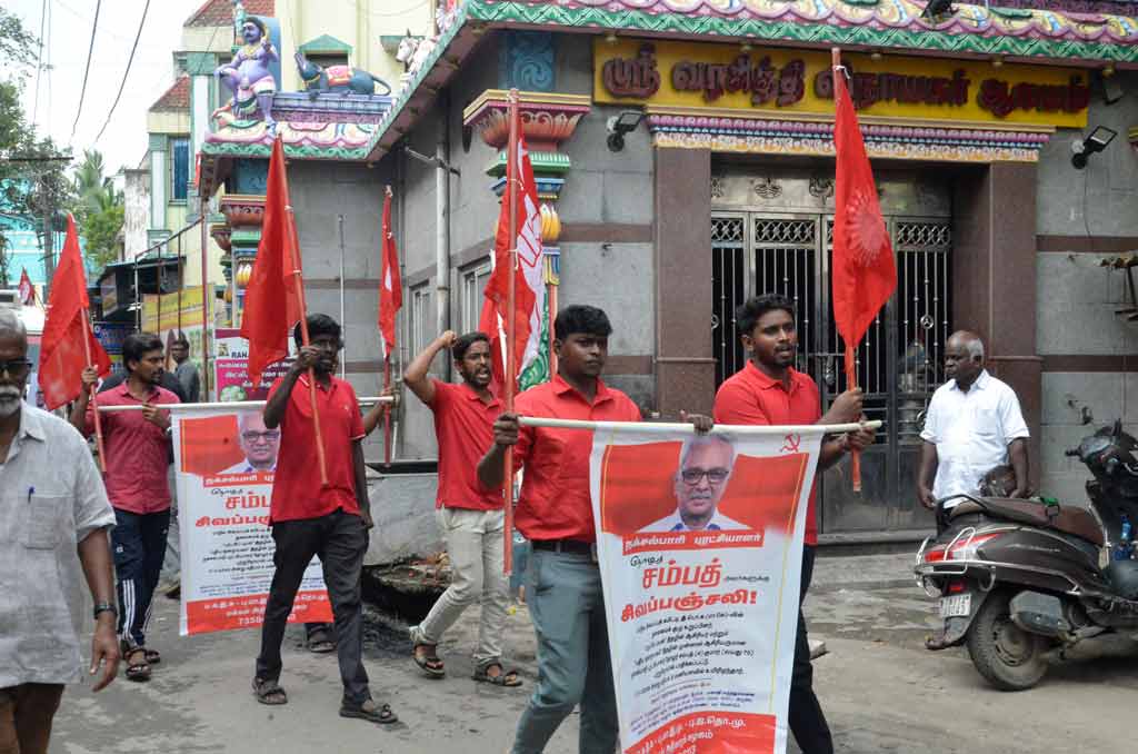 ஊர்வலத்தில் “நக்சல்பாரி புரட்சியாளர் தோழர் சம்பத்துக்கு செவ்வணக்கம்”, “ஆர்.எஸ்.எஸ் – பா.ஜ.க ; அம்பானி-அதானி பாசிசத்தை முறியடிப்போம்”, “வேண்டாம் பி.ஜே.பி; வேண்டும் ஜனநாயகம்”, “பாசிச எதிர்ப்பு ஜனநாயகக் குடியரசு கட்டியமைப்போம்” “மார்க்சிய-லெனினிய-மாவோ சிந்தனை வெல்லட்டும் வெல்லட்டும்” உள்ளிட்ட முழக்கங்கள் விண்ணதிர எழுப்பப்பட்டன.
