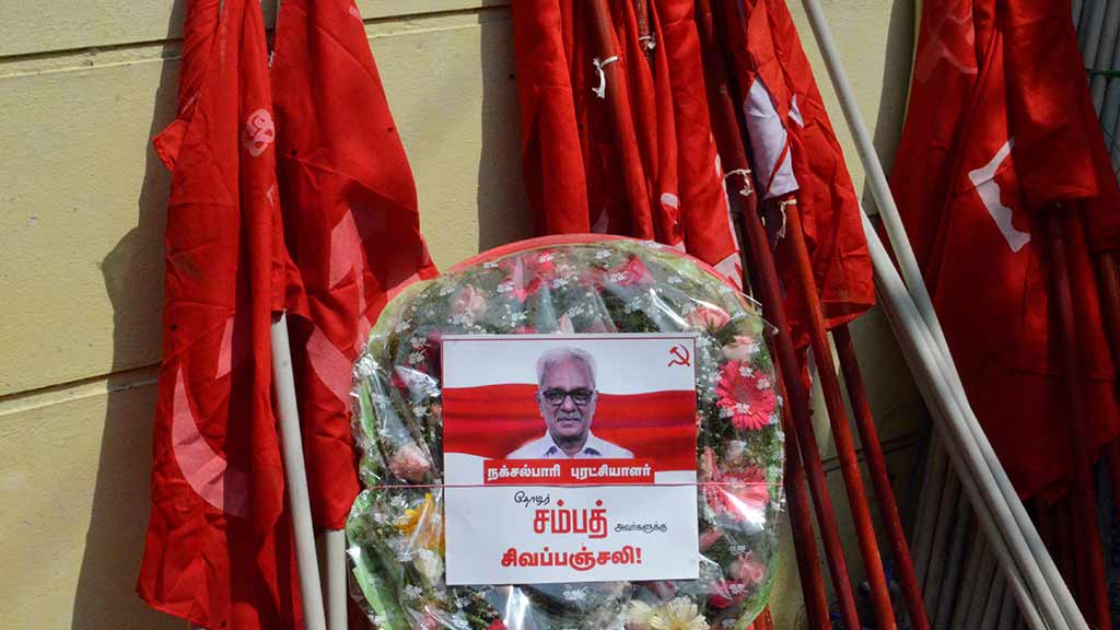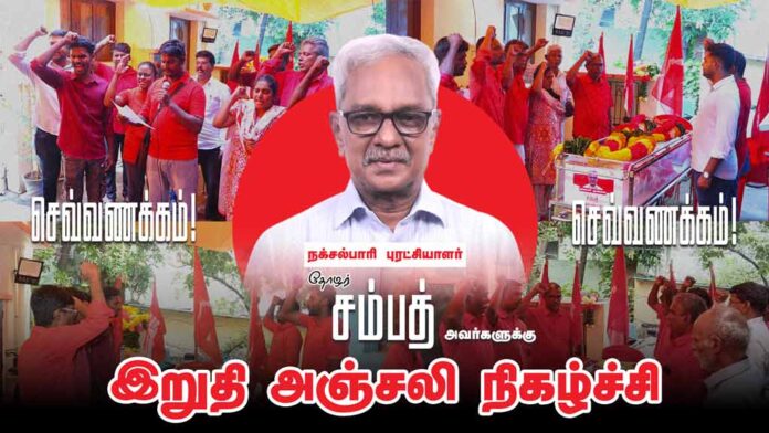 மாநில அமைப்புக் கமிட்டி, இ.பொ.க.(மா-லெ)-வின் தலைமைக் குழு உறுப்பினர், “புரட்சிப் புயல்” சித்தாந்த இதழின் ஆசிரியர் மற்றும் “புதிய ஜனநாயகம்” இதழின் முன்னாள் ஆசிரியருமான நக்சல்பாரி புரட்சியாளர் தோழர் சம்பத் என்கிற குமார் (வயது 70), புற்றுநோயால் பாதிக்கப்பட்டு, மருத்துவ சிகிச்சை பலனளிக்காத நிலையில், 17.11.2025 அன்று பகல் 2.15 மணிக்கு சென்னையில் உயிரிழந்தார்.