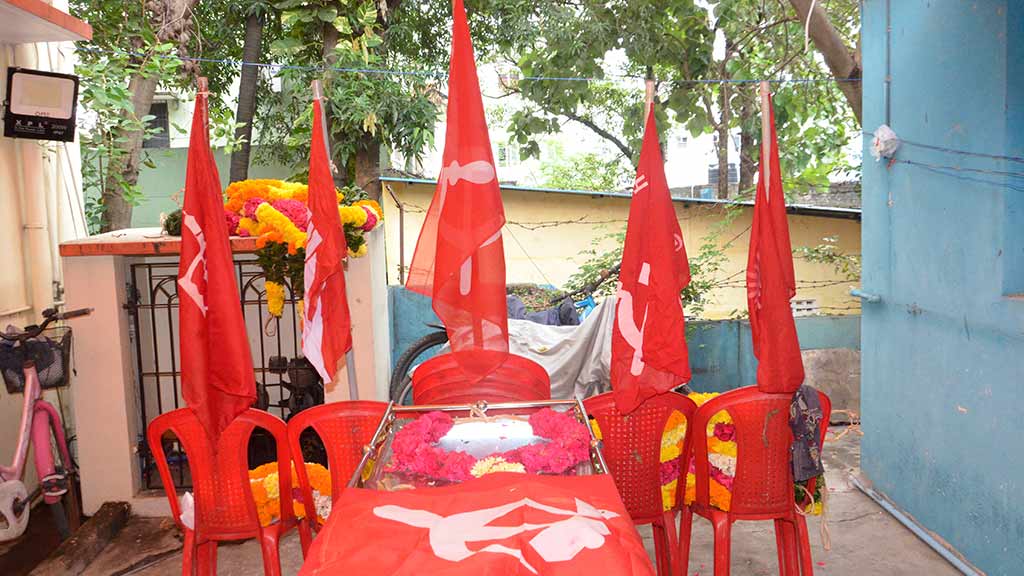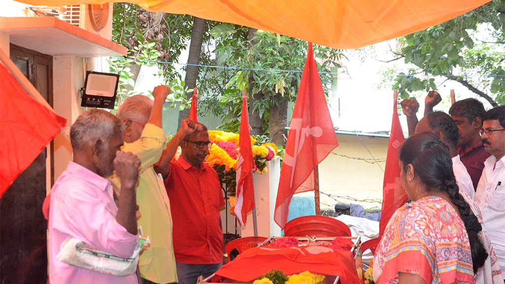 அதன்பிறகு, மதியம் 12 மணியளவில் லட்சுமிபுரம் இல்லத்திலிருந்து குரோம்பேட்டை ஜி.எஸ்.டி சாலை வரை இறுதி ஊர்வலம் நடத்தப்பட்டது. தோழரின் உடலை தாங்கிச் சென்ற ஆம்புலன்ஸ் வாகனத்தின் முன்னணியில் பு.மா.இ.மு. தோழர்கள் ஊர்வலத்தை வழிநடத்தி சென்றனர். வாகனத்திற்கு பின்னால் மற்ற தோழர்கள் அணிவகுத்து வந்தனர். ஊர்வலத்தில் கலந்துகொண்ட பெரும்பாலான தோழர்கள் செஞ்சட்டை அணிந்து செங்கொடி ஏந்தியிருந்ததால் ஊர்வலமே செந்நிறமாக காட்சியளித்தது.