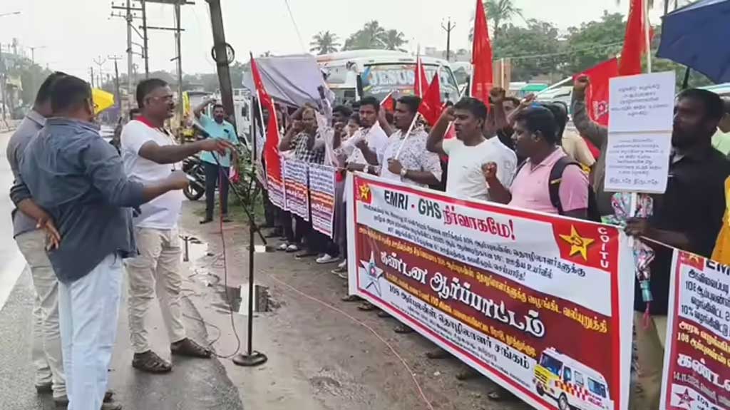 இந்நிலையில்தான், தனியார் நிறுவனத்தின் மறைமுக ஊதிய வெட்டைக் கண்டித்தும், ஊதியத்தை உயர்த்தி வழங்காத தி.மு.க. அரசைக் கண்டித்தும் 108 ஆம்புலன்ஸ் தொழிலாளர்கள் நவம்பர் 14-ஆம் தேதியன்று தூத்துக்குடியில் ஆர்ப்பாட்டம் நடத்தியுள்ளனர்.