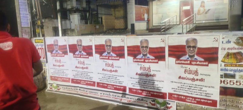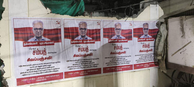 குறிப்பாக, தோழர் சம்பத் உயிரிழந்த அன்றிரவு, சிவப்பஞ்சலி சுவரொட்டிகளை குரோம்பேட்டை, கிண்டி, ஆலந்தூர், சென்ட்ரல், சைதாப்பேட்டை, சேப்பாக்கம், திருவல்லிக்கேணி, தரமணி, வேளச்சேரி, பூந்தமல்லி, மதுரவாயல் என சென்னை முழுவதும் தோழர்கள் ஒட்டினர். மிக சொற்ப எண்ணிக்கையிலான தோழர்களாக இருந்தாலும் அன்றிரவு முழுவதும் தூங்காமல் சுமார் 1,200 சுவரொட்டிகளை ஒட்டினர். இத்தோழர்கள் யாவரும் முந்தைய நாள் வரையில் தோழர் சம்பத்தின் மருத்துவ சிகிச்சை தொடர்பான வேலைகளிலும், பிற வேலைகளிலும் ஓய்வின்றி ஈடுபட்டிருந்த இளம் தோழர்கள் என்பது குறிப்பிடத்தக்கது.