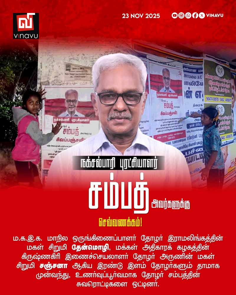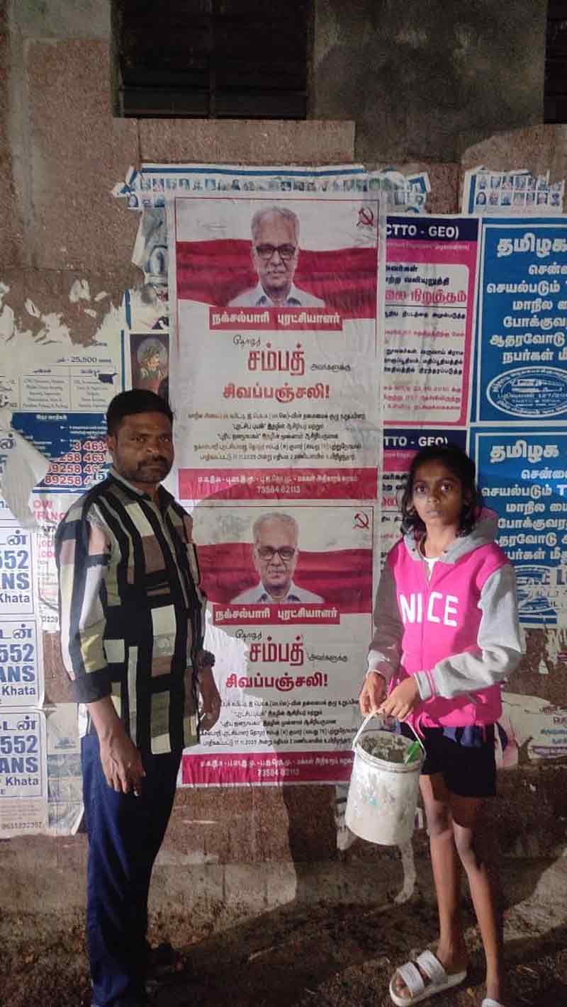 குறிப்பாக, ம.க.இ.க. மாநில ஒருங்கிணைப்பாளர் தோழர் இராமலிங்கத்தின் மகள் சிறுமி தேன்மொழி, மக்கள் அதிகாரக் கழகத்தின் கிருஷ்ணகிரி இணைச்செயலாளர் தோழர் அருணின் மகள் சிறுமி சஞ்சனா ஆகிய இரண்டு இளம் தோழர்களும் தாமாக முன்வந்து, உணர்வுப்பூர்வமாக தோழர் சம்பத்தின் சுவரொட்டிகளை ஒட்டியது நெகிழ்ச்சியை ஏற்படுத்தியது.