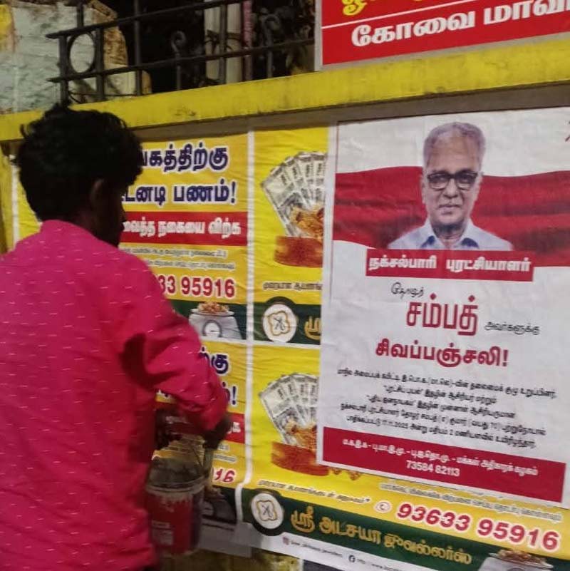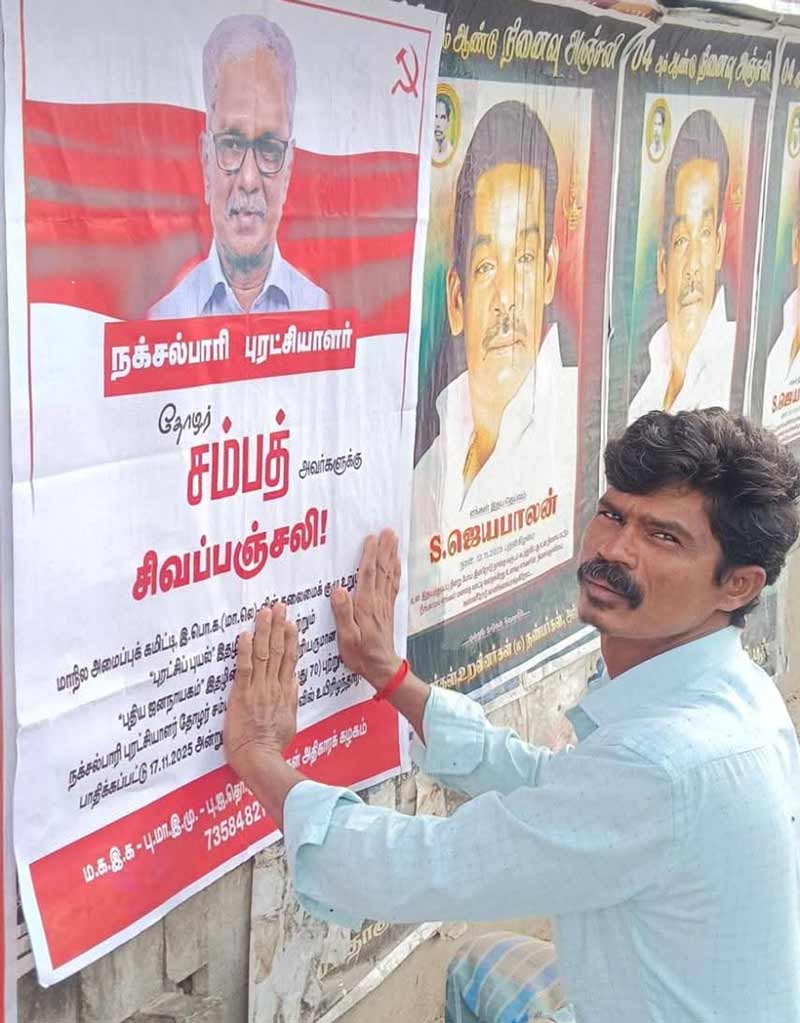 அடுத்த இரு நாட்களில் தமிழ்நாடு முழுவதுமுள்ள தோழர்கள், மதுரை, கிருஷ்ணகிரி, ஓசூர், கோவை, நெல்லை, தூத்துக்குடி, கடலூர், உளுந்தூர்பேட்டை, உசிலம்பட்டி, ராணிப்பேட்டை, விருத்தாச்சலம், புதுச்சேரி உள்ளிட்ட பல மாவட்ட, நகரப் பகுதிகளில் தோழர் சம்பத்தின் சுவரொட்டிகளை ஒட்டியுள்ளனர். உசிலம்பட்டி பகுதியில் அமைப்பின் ஆதரவாளர்களாக இருப்பவர்களும் தாமாக முன்வந்து சுவரொட்டி ஒட்டும் பணியில் உணர்வுப்பூர்வமாக கலந்துகொண்டுள்ளனர்.