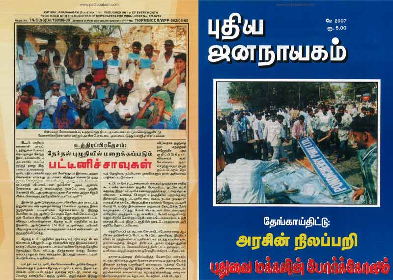 புதிய ஜனநாயகம், ஆண்டு 22, இதழ் 07 | மே 01-31, 2007 பி.டி.எஃப் வடிவில் தரவிறக்கம் செய்ய