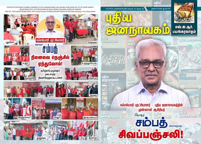 புதிய ஜனநாயகம் – டிசம்பர் 2025 இதழின் அச்சுப் பிரதியைப் பெற கீழே குறிப்பிடப்பட்டுள்ள தொலைபேசி எண்ணைத் தொடர்பு கொள்ளவும்.