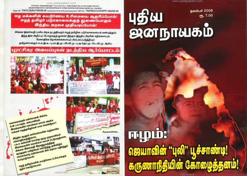 - தலையங்கம்: ஈழம்: ஜெயாவின் “புலி” பூச்சாண்டி! கருணாநிதியின் கோழைத்தனம்!