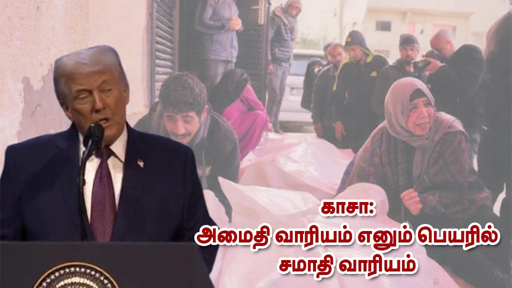 தனது ஒற்றைத் துருவ உலக மேலாதிக்கம் சரிவதை சகித்துக்கொள்ள முடியாமல், டிரம்ப் தலைமையிலான அமெரிக்கா அடாவடியான செயல்பாடுகளில் ஈடுபட்டு வருகிறது. எந்த நாட்டிற்குள்ளும் புகுந்து அந்நாட்டு அதிபரைக் கைது செய்வது; மற்றொரு நாட்டின் கட்டுப்பாட்டில் இருக்கும் பகுதியை இணைத்துக்கொள்ள துடிப்பது; ஏற்றுக்கொள்ள மறுக்கும் நாடுகளுக்கும் இதுவரை தனது கூட்டாளியாக இருந்த நாடுகள் மீதும் தடாளடியாக வரி விதிப்பது; எந்தவொரு நாட்டின் மீதும் போர் தொடுத்து மக்களை இனப்படுகொலை செய்வது, அதன் செல்வங்களை கார்ப்பரேட்களுக்கு தாரைவார்ப்பது என இந்த புதிய உலக நியதிகள் பாசிஸ்ட் டிரம்பால் அமல்படுத்தப்பட்டு வருகிறது. அதன் ஒரு அங்கமாகவே காசா மீதான இனப்படுகொலையையும் இந்த போலியான ‘அமைதி வாரியத்தையும்’ புரிந்துகொள்ள வேண்டும். இக்கொள்ளைக் கூட்டத்திடம் இருந்து காசாவை மீட்க மிகப்பெரிய மக்கள் எழுச்சியை அனைத்து நாடுகளிலும் கட்டியெழுப்புவோம்.