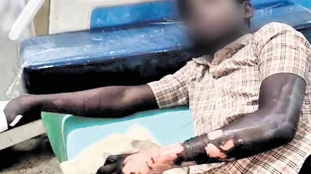 இந்நிலையில் ஜனவரி 30 ஆம் தேதியன்று தலித் சமூகத்தைச் சேர்ந்த ரக்ஷித் குப்பையைக் கொட்டுவதற்குச் சென்றுள்ளார். அப்போது அவரின் சாதியைச் சொல்லி இழிவாகத் திட்டிய இரண்டு மாணவர்கள் சாதி வெறியுடன் ரக்ஷித்தைக் கீழே தள்ளி கை கால்களைப் பிடித்து எரிந்து கொண்டிருந்த குப்பையில் தூக்கி வீசியுள்ளனர். வலி தாங்க முடியாமல் மாணவர் அலறி துடித்துள்ளார்.