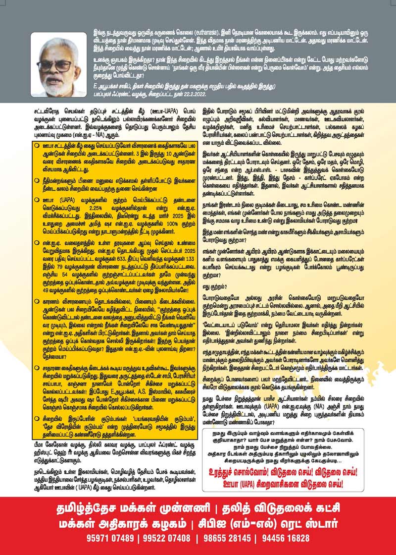 ஊபா (UAPA) சிறைவாசிகளை விடுதலை செய்!