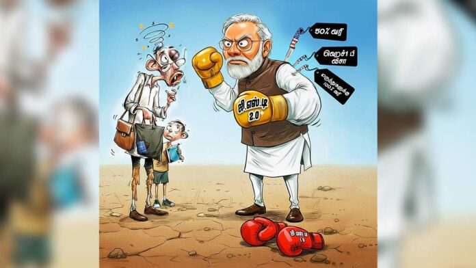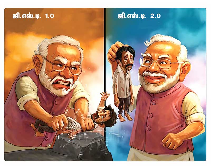 கடந்த 8 ஆண்டுகளாக ஜி.எஸ்.டி. எனும் சரக்கு மற்றும் சேவை வரி (Goods and Service Tax) வசூல் முறையின் மூலம் இந்திய நாட்டின் பெரும்பான்மை உழைக்கும் மக்களின் இரத்தத்தை ஒட்டச்சுரண்டிக் கொண்டிருந்த மோடி அரசானது, பொருட்களுக்கான ஜி.எஸ்.டி. வரி விகிதங்களில் சில திருத்தங்களை மேற்கொண்டிருக்கிறது. இதனை “அடுத்த தலைமுறைக்கான ஜி.எஸ்.டி”, “ஜி.எஸ்.டி. 2.0” என்ற பெயர்களில் ஆரவாரத்துடன் பிரச்சாரம் செய்து வருகிறது.