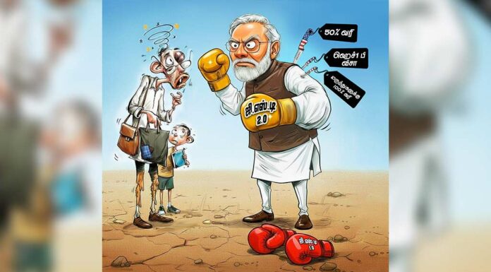 மோடி அரசின் ஜி.எஸ்.டி. 2.0-வினால் நாட்டின் பெரும்பான்மையான உழைக்கும் மக்கள் எந்த ஆதாயமும் அடையப் போவதில்லை. அம்மக்கள் மீதான வரிச் சுரண்டல் வழக்கம் போலத் தொடர்ந்து கொண்டுதான் இருக்கிறது.