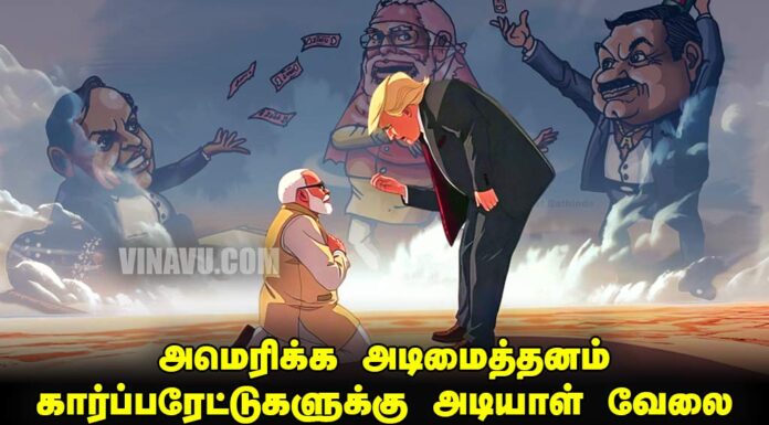 1990-களில் காங்கிரசும் வாஜ்பாய் அரசும் தனியார்மய - தாராளமய - உலகமயக் கொள்கைகளை ஏற்று நமது இந்திய நாட்டை மறுகாலனியாக்கத்திற்கு திறந்துவிட்டன. அதைபோல, தற்போது நாட்டை அமெரிக்காவின் காலனியாக மாற்றுவதற்கான நடவடிக்கையில் பாசிச மோடி அரசு தீவிரமாக இறங்கியுள்ளது.