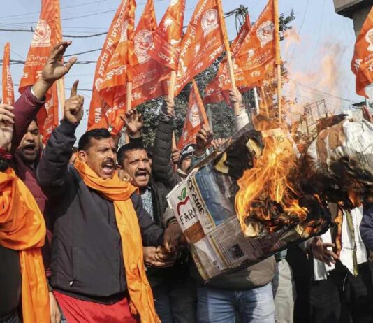இந்திய-அமெரிக்க இடைக்கால வர்த்தக ஒப்பந்தத்தை எதிர்த்து SKM, AIKS உள்ளிட்ட பல விவசாய அமைப்புகள் பிப்ரவரி 12-ஆம் தேதியன்று நாடு தழுவிய பொது வேலை நிறுத்தப் போராட்டத்தை அறிவித்துள்ளன. அதன் பகுதியாக, கிராமங்களில் ஆர்ப்பாட்டங்களில் மோடி-டிரம்ப் உருவ பொம்மைகள் எரிக்கப்பட்டு எதிர்ப்பு தெரிவிக்கப்படும் என்று தெரிவித்துள்ளன.