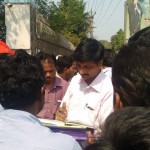 முதலாளியின் ஏவல்நாயாக செயல்படும் எச்.ஆர் அதிகாரி கரணை அம்பலப்படுத்தி ஒட்டிய சுவரொட்டிகளில் தொழிலாளிகள் திட்டி எழுதியுள்ளனர்.