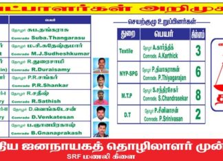 மணலி SRF பொதுதொழிற்சங்க தேர்தலில் பு.ஜ.தொ.மு -வை ஆதரியுங்கள் !
