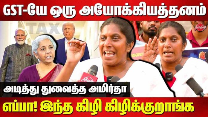 ஜி.எஸ்.டி-யே ஒரு அயோக்கியத்தனம் | டிரம்பிற்கு அடிபணியும் மோடி அரசு | தோழர் அமிர்தா