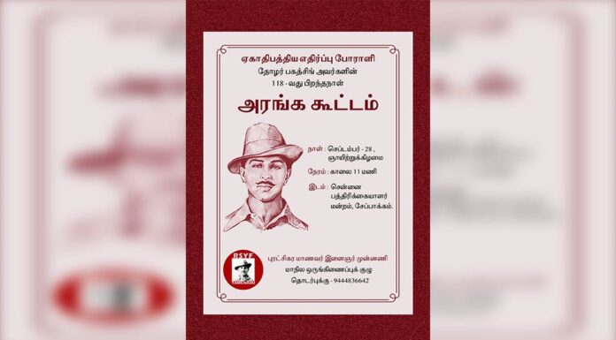 நாள்: செப்டம்பர் 28 (ஞாயிற்றுக்கிழமை) | நேரம்: காலை 11 மணி | இடம்: சென்னை பத்திரிகையாளர் மன்றம், சேப்பாக்கம்.