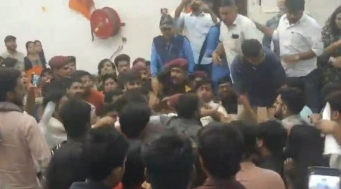 JNU-வில் தேர்தலுக்கு முன்பாக தேர்தல் குழு ஒன்று அமைக்கப்படும். அதற்கான கலந்துரையாடல் கூட்டத்திற்கு கும்பலாக அணிதிரண்டு வந்த ABVP குண்டர் படையினர் சாவர்க்கர் என முழக்கமிட்டும் அங்கிருந்த இடதுசாரி மாணவர்களைத் தாக்கியும் உள்ளனர்.