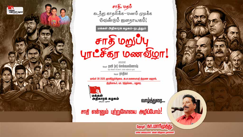 அன்பார்ந்த உழைக்கும் மக்களே, ஜனநாயக சக்திகளே! டிசம்பர் 28 அன்று மக்கள் அதிகாரக் கழகத்தின் மாநி […] - Load More
