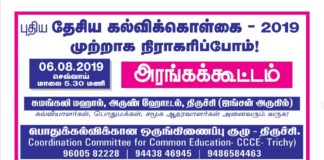 தேசிய கல்விக் கொள்கை – 2019 முற்றாக நிராகரிப்போம் ! திருச்சியில் அரங்கக் கூட்டம்