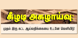 கீழடி அகழாய்வு: முதல் இரு கட்ட ஆய்வறிக்கையை உடனே வெளியிடு! | பு.மா.இ.மு சுவரொட்டி