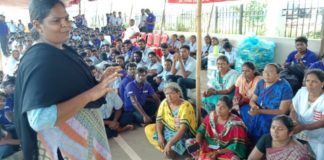 போராட்டக்களத்தில் யமஹா தொழிலாளர்களை சந்தித்த பெ.வி.மு. தோழர்கள்