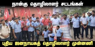 நான்கு தொழிலாளர் சட்டங்கள் – புதிய ஜனநாயகத் தொழிலாளர் முன்னணி கண்டன ஆர்ப்பாட்டம்